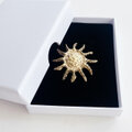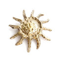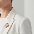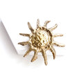 太陽の輝きとエネルギーを象徴する「ソレイユゴールドブローチ」。放射状に広がる光線を思わせるデザインと、アンティーク調のゴールドの風合いが印象的な一品です。独特な凹凸のある表面加工が手作りの温かみと存在感を引き立て、気品を感じさせます。大人の女性の装いにふさわしいこのブローチは、シンプルなコーディネートに個性を添え、華やかなアクセントとなります。ストールやバッグ、ジャケットの胸元に合わせれば、どのシーンでも目を引くスタイルが完成します。