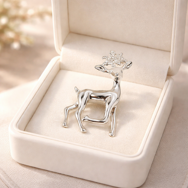 繊細な角が美しく広がる、小鹿モチーフのスノーディアブローチ。