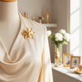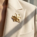 洗練されたシンプルな花のデザインが特徴の「フロラルブローチ」。緩やかな曲線とメタリックな輝きが調和し、上品でモダンな印象を与える一品です。ペタル部分には柔らかな光沢感があり、華やかさと落ち着きを併せ持つデザインが魅力的です。カジュアルからフォーマルまで幅広いシーンで活躍するこのブローチは、ファッションにさりげないアクセントをプラスします。ジャケットやストール、ハットなどに合わせて、日常の装いを格上げするアイテムとして最適です。