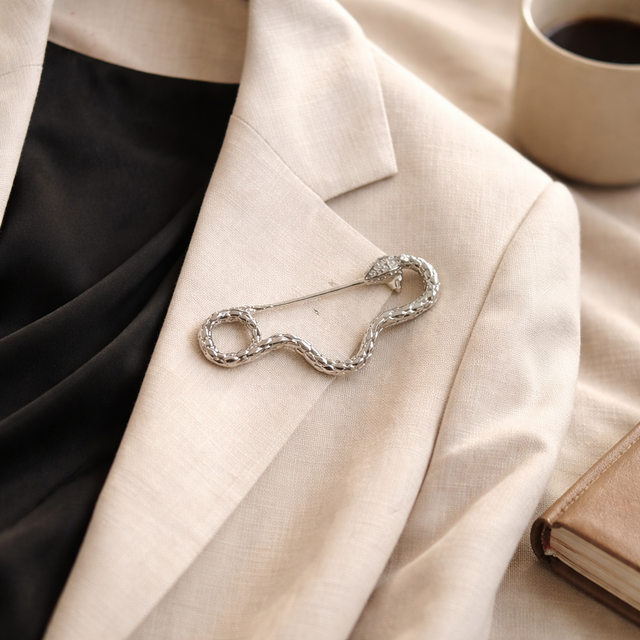 個性的で上品なアクセントを加え、フォーマルなシーンから日常の装いまで幅広く活躍します。ストールやジャケット、バッグに添えるだけで、コーディネートを格上げするアイテムです。