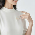 大小のパールがリズミカルに配置された「ルミナスパールブローチ」。アンティーク調のゴールド仕上げにキュービックジルコニアの煌めきがアクセントとなり、上品で華やかな印象を与えます。柔らかなパールの光沢と繊細な輝きが調和し、エレガントな大人の装いを引き立てる一品です。フォーマルなシーンや特別な日の装いにぴったり。ジャケットやストール、ワンピースに添えることで、洗練されたアクセントとして活躍します。