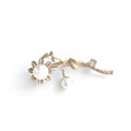 自然の息吹を感じさせる小枝に花をあしらった「フローラルブランチパールブローチ」。アンティーク調のゴールド仕上げに、パールとキュービックジルコニアが美しいアクセントを添え、華やかで上品なデザインが魅力の一品です。小枝に咲く花や葉のディテールが繊細に表現されており、装いに自然美と気品をプラスします。ジャケットやストール、バッグに添えることで、フォーマルからカジュアルまで幅広いシーンで活躍するアクセサリーです。