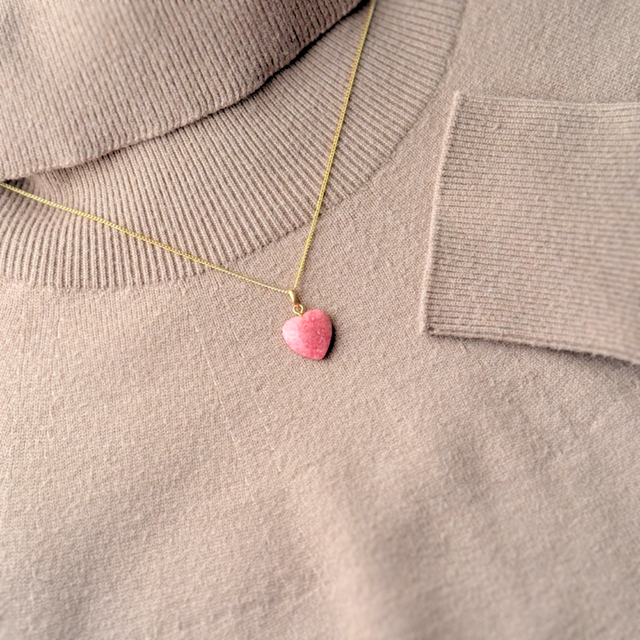 15mm ハート ロードナイト/薔薇輝石 K18 K24GP 天然石ネックレス - シングルS