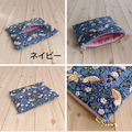 表地には接着芯を貼布、内布は薄めの生地です。ポーチ自体は軽いながらもしっかりと仕上げています。