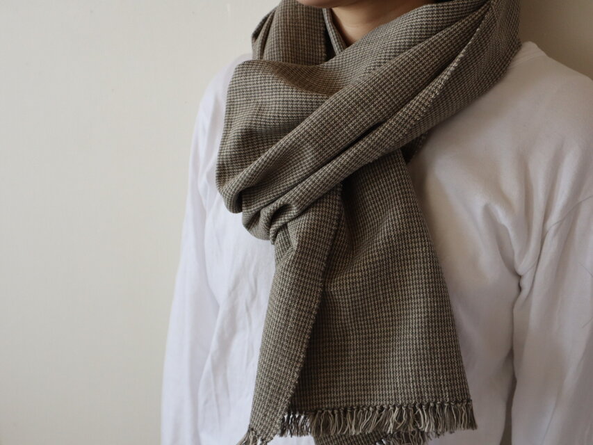 手紡ぎエジプト綿を緯糸に織りこんだ、さらりとした肌触りのマフラーです。
