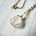 《14kgf》波の一雫 ホワイトシーグラスのネックレス 50cm