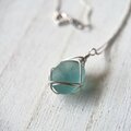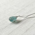 《Silver925》海の一雫 癒しの海色シーグラスビーズのネックレス 40cm