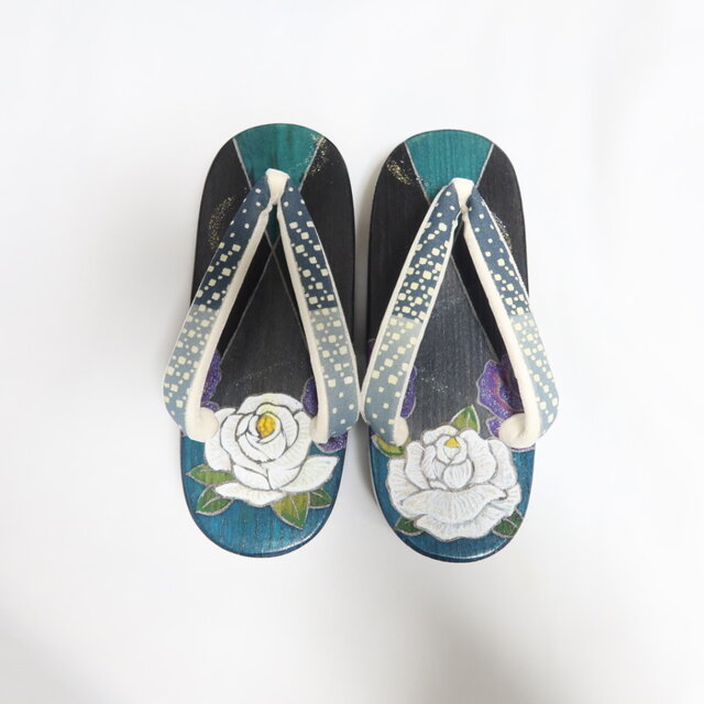 背の高い下駄なので履いた時に側面の柄が映えます。