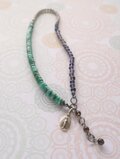 【素材】ターコイズ(チューブ型 約5×2mm)、アイオライト4mm、淡水パール(ポテト約3×5mm)、スモーキークォーツ4mm、メタルビーズ3×4mm、不思議メダイ14×8mm、金属(真鍮合金)