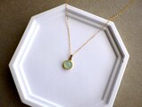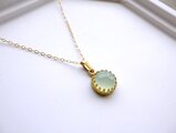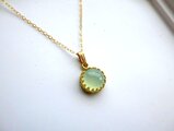 透明感のある淡いアップルグリーンの中に、優しく透けるような瑞々しい輝きが広がる、アップルグリーンカルセドニー。そのアップルグリーンカルセドニーで小さなペンダントネックレスをご用意しました。