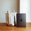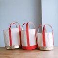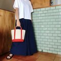 厚めのキナリ帆布を使用した丈夫でスタンダードな配色の丸底トートです!
