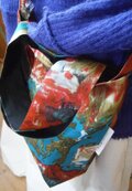 シェニール織りで黒地に映える 花々の色合いが 美しい! 手触りが 優しく 持っている 同じ素材で黒地の花柄の エプロン との コラボも 素敵です。 プチプレゼント 可愛い。