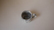 横から見ると台形のフォルムで白と黒の加減がちょうどよく出たマグだと思います。