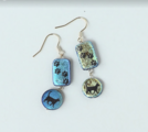 ランダムに色が変化するオーロラ色と、個体差のあるビーズが一つひとつ異なる表情を見せ、ヴィンテージ風の感じが溢れるざらざらした表面が魅力を引き立てます。丸いビーズは直径14mm、足跡が点々とついた長方形のビーズは12mm×18mmのサイズで、トップの総長は40mm、重さは3.18gです。