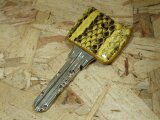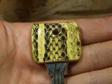 ツヤ有りの黄色のダイヤモンドパイソン(錦蛇)の革でキーカバーを作りました。
