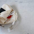 帆布をシルクスクリーンで染めたおにぎり型のポーチです