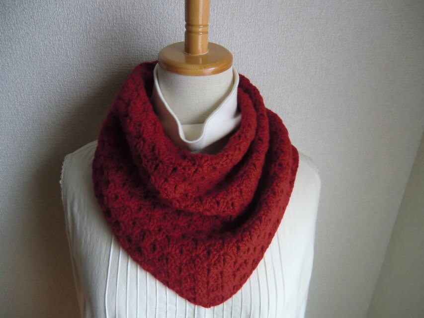さっそく試着しており、コンパクトで暖かいです。スカラップの縁編みもさりげなく効いてます。明日着けて行くのが楽しみ。大事にします。