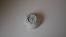 指の跡やノコ刃で削ったギザギザな跡がうっすらと白化粧のコーティングから垣間見えます。