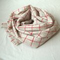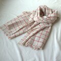 ホームスパン大判ストール ナチュラルベージュ・赤格子