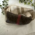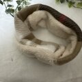 ハンドメイド☆犬用ネックウォーマーフリースベージュ赤茶チェックファSサイズリバーシブル