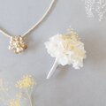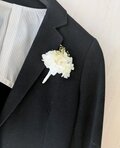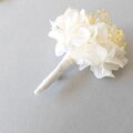 真っ白で花びら大きめの紫陽花を使ったコサージュ。
