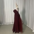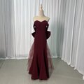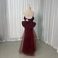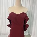 美品!カラードレス ボルドー色 オフショルダー バックリボン 細見えシルエット セクシー