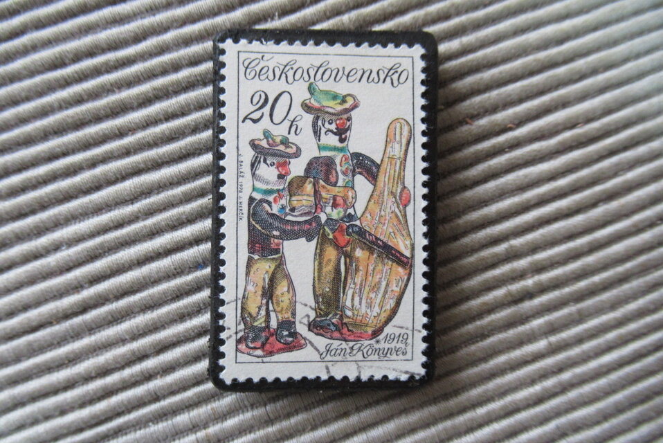 アップサイクル チェコスロバキア 切手ブローチ10328