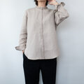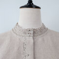 ・首のラインにきれいに沿ったリネンレースのスタンドカラー