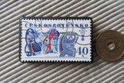 アップサイクル チェコスロバキア 切手ブローチ10332