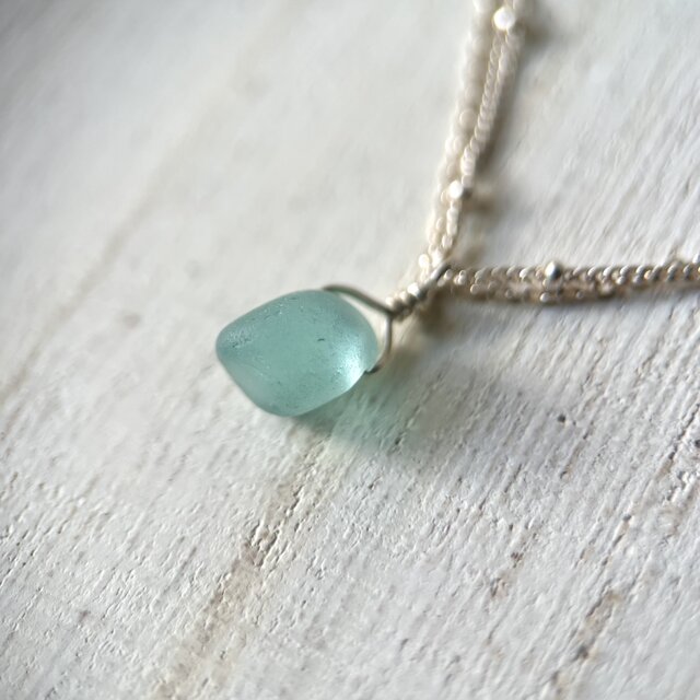 《Silver925》小さくてさり気ない海色シーグラスビーズの雫アンクレット
