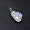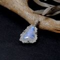 ブルーの幻想的な輝きが浮かぶレインボームーンストーンを、粒飾りをあしらったペンダントに仕上げました。