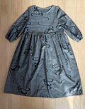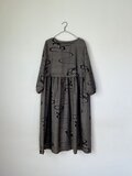 *アンティーク着物*流水に扇模様泥大島紬のタックワンピース(長袖・ゆったりサイズ・5マルキ)