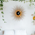 - 製造プロセス: この時計の中央の文字盤とスパイクは 6 mm の樺合板からレーザーカットされ、研磨後、スパイクに 3 つの異なる色合いの銅/金を手で塗装し、均等に分配して文字盤に手動で固定します。 中央のディスクは黒く塗装されています。