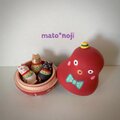 ぽってりしたタコマトさんの中に、小さな小さな黒招き、金招き、三毛招きが入っている変わりマトです。山形の民芸品「猫にタコ」にヒントを得た作品。「招き猫+ご多幸」で、2倍のおめでたさと言われます。