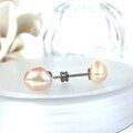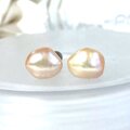 バロック淡水真珠のひと粒ピアス・優しいオレンジピンク・高品質チタン