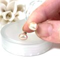 当工房でパールに穴をあけて芯付き金具を接着するという、高価な宝飾用真珠と同じ工法で制作しております。