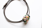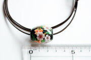 とんぼ玉のサイズは27mm×22mmです。重さは26gです。