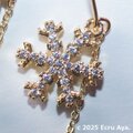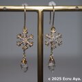 キュービックジルコニアの雪の結晶のチャームをピアスパーツに下げ、その後ろから細いチェーンを使用してハーキマーダイヤモンドを少し揺れるように配置しています
