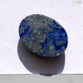 母岩を成す白色のカルサイト(方解石)や黄金色のパイライト(黄鉄鉱)が斑点として混じる事が多く、一様に群青色のものは数が少ない為珍重されますが、パイライトが美しく点在しているものは更に高く評価されます。