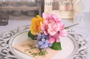 #浴衣 #浴衣髪飾り #お花の髪飾り #黄色の薔薇 #紫陽花 #イエローの薔薇