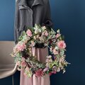 【再販】迫力の50cm!スイトピーやモーブピンクの花を使った、グラデーションなピンクリース●ワイン好きが集まる赤ブドウ