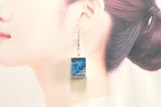 レジンアート 長方形のピアス〈深夜の旅〉