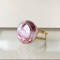 深みのあるパープルマーブルが美しい、チェコガラスのリング。