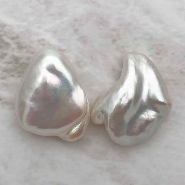 真珠の卸屋ならではの照りのしっかりある約20mmの大粒バロックパールのペアを厳選いたしました。