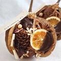 コロンと可愛いブッダナッツに、チョコレート色の樹脂でコーティングしたドライオレンジと、本物と見間違えるチョコレートのデコレーションパーツ、スターアニス(天然素材)やくるみ殻などを詰め込みました