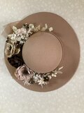 帽子の色目に合わせてレースをつけて趣きのある壁掛けにしてあります。