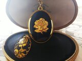 漆黒Glass、Gold塗装縁取り、中央には立体的な大きな薔薇。