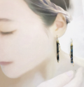 ブルー螺鈿とゴールドツイストスティックのピアスイヤリング【1615】