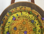ふわふわな毛糸で円編みをして、バッグ面に縫い付けました。