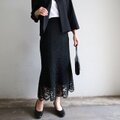 ほっそり美しく見えるシルエット抜群なレーススカート。